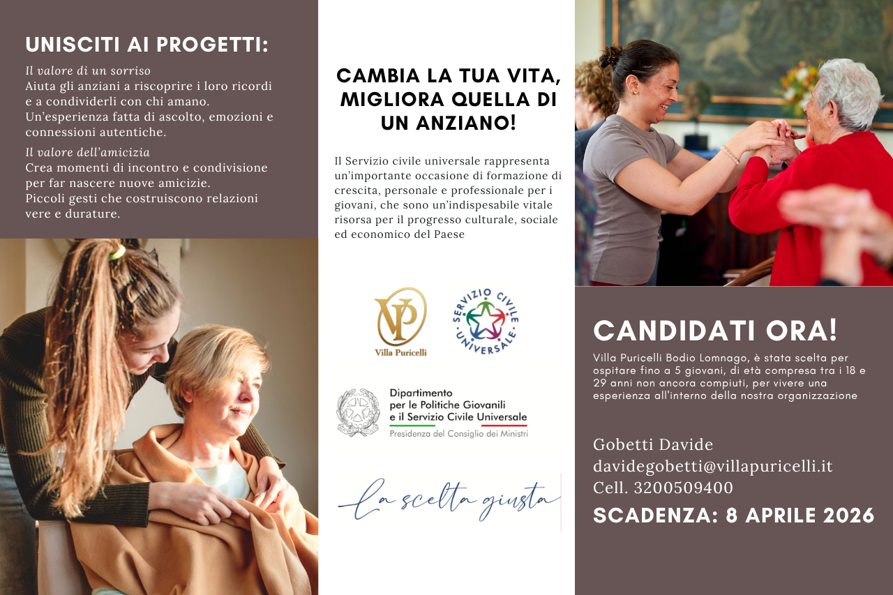 Villa Puricelli è una realtà in continua evoluzione, e sempre alla ricerca di professionisti in grado di apportare un valore aggiunto che permetta la crescita della nostra piccola comunità.